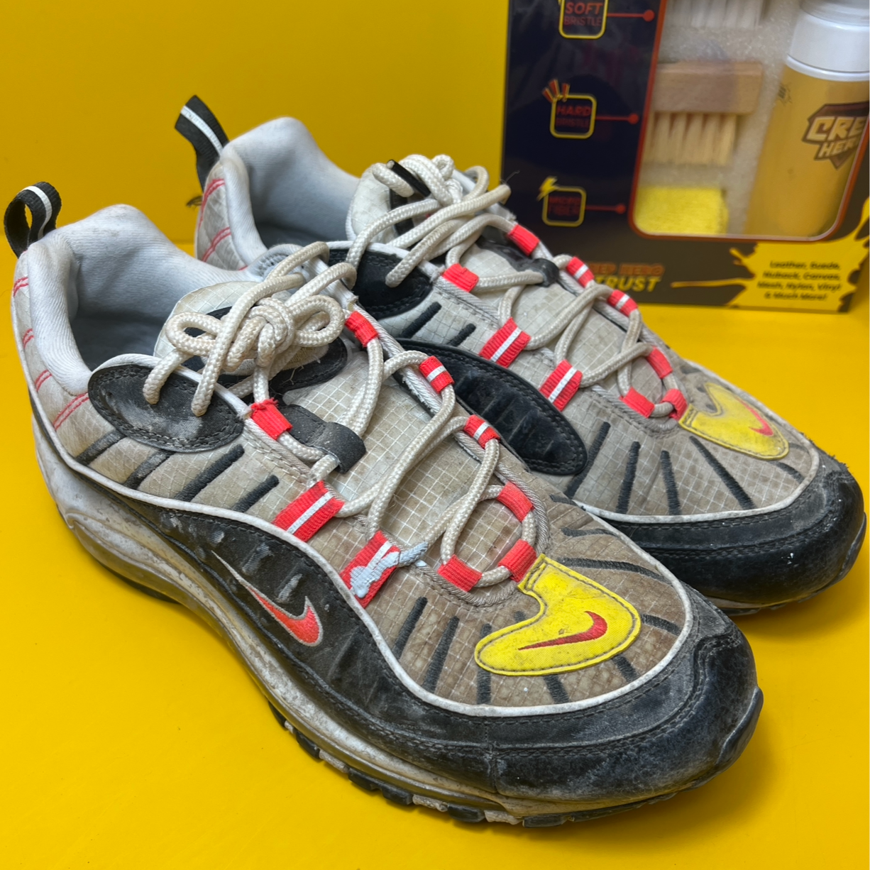 Yes, at Crep Hero, there’s no stain we can’t fight. Whether it’s paint splashes, oil marks, or red wine spills, we have the tools, techniques, and experience to tackle even the most stubborn stains. Every pair is assessed individually so we can apply the right method for the best possible results..