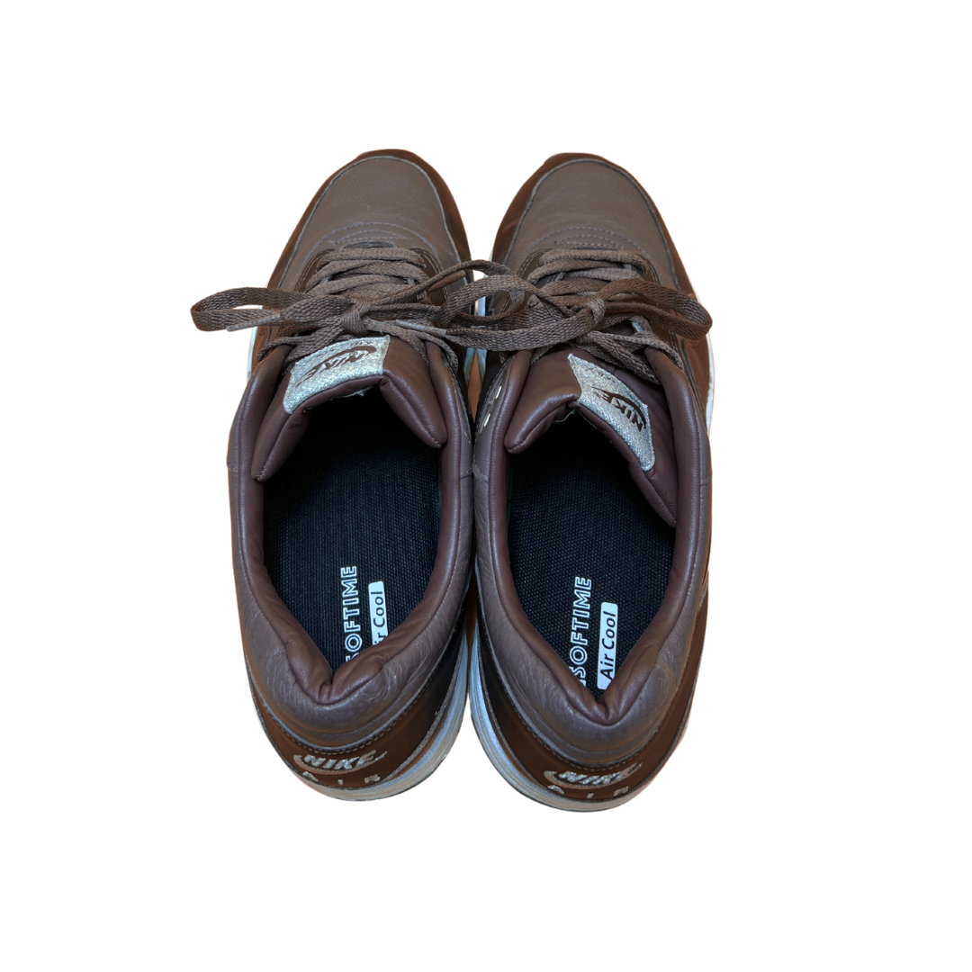Originally released in 2008 as part of the Olympic Medal Pack, the Nike Air Max 1 Premium 'Bronze' features a mix of premium suede, leather, and mesh in a striking metallic bronze finish. This pair has been professionally deep cleaned and is in amazing condition for its age, with no bad odours. Comes with brand new replacement insoles and a replacement box—an iconic and well-preserved piece of Air Max history.
